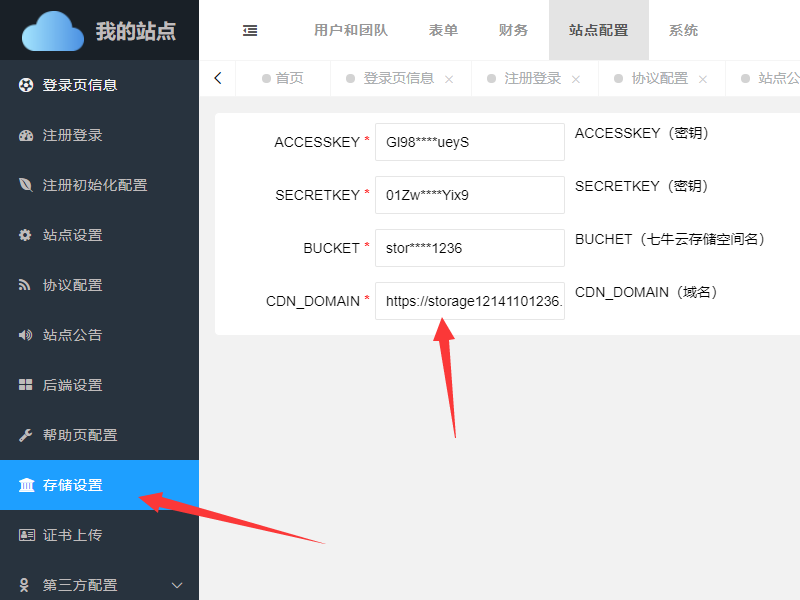 | 配图:后台管理 - 站点配置 - 储存设置 |