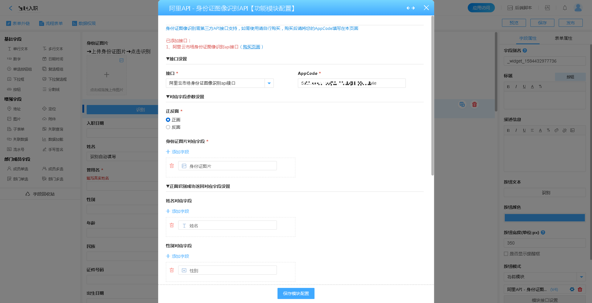 1、利用云境Support对接外部API的能力,全自动识别入职员工的身份信息,减少繁琐的个人信息输入步骤,大大提升了人事办事效率。