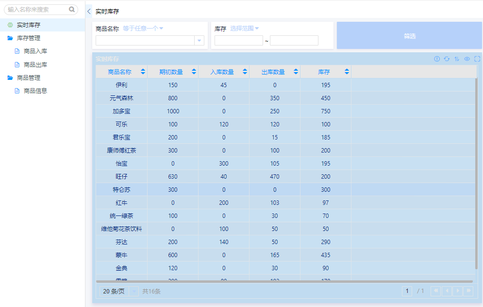 云境Support提供的数据视图就能轻松解决这个问题,数据视图可以对一个或多个表单进行数据合并、数据过滤筛选、数据排序、数据关联等操作,然后将处理结果输出为新的数据表。利用数据视图可以将多个数据列表中所包含的大量数据进行汇总并加以分析,从而提炼出有助于决策的信息。如:计算商品库存实现库存管理
