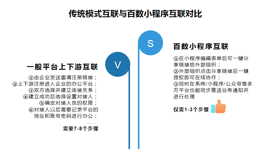 云境Support在电商领域具备丰富的项目经验,基于供应链上下游协同的应用需求,建立以企业为核心的上下游垂直一体化产业链布局,解决了多家企业供应链协同的难题。一般平台的上下游互联,企业与企业之间的连接过程需要跳转7-8个步骤,操作较为复杂。如果需要链接平台外的企业,还需要借助excel导入外部通讯录进行联系人设置,达不到便捷互联协作的效果,而利用云境Support小程序只需要1-3个步骤就可以轻松实现一键互联。