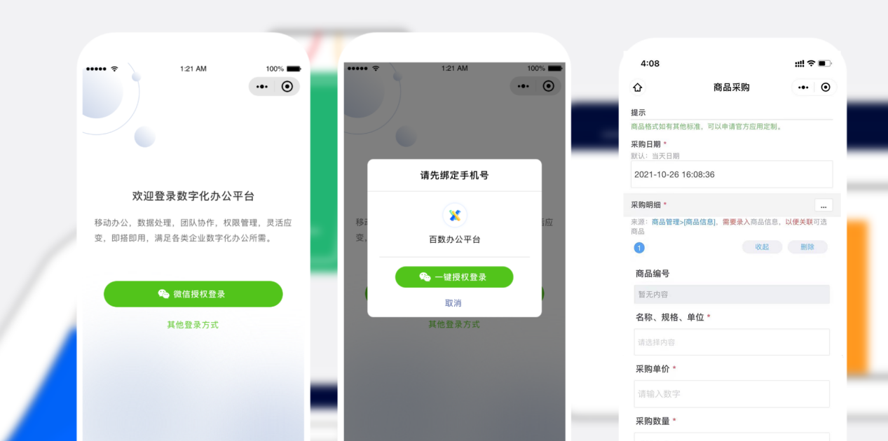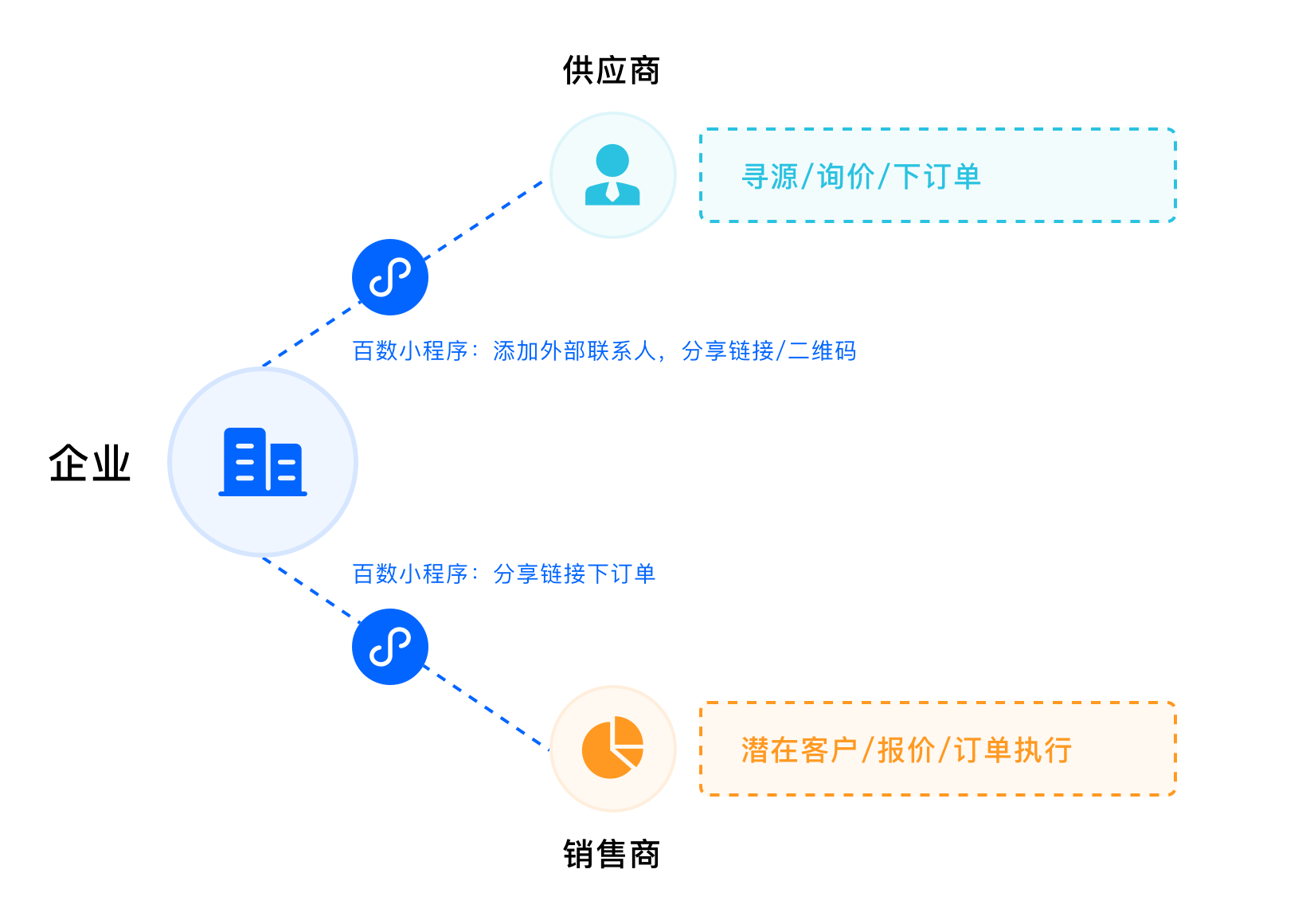 外部组织无需加入团队组织,点击分享链接后一键授权即可在线下单,也会同时拥有在小程序、浏览器、公众号内处理、查看、编辑相关权限业务数据的能力。