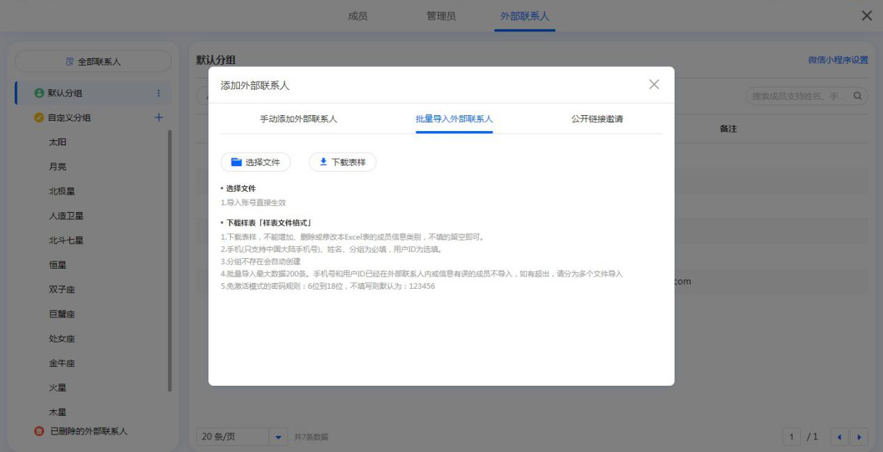 通过外部通讯录进行外部人员的分组权限管理,在不需要将企业外部人员加入内部办公系统的情况下,实现协同办公场景,例如数据的查看、使用、编辑等等。
