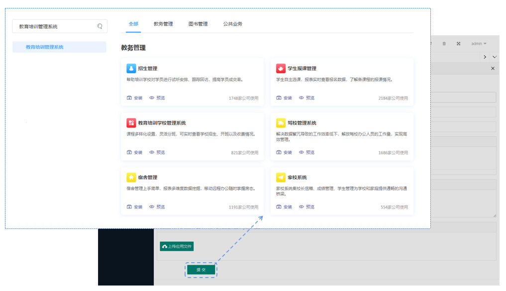 管理员可以通过后台,快速查找到需要进行管理的应用,并对其进行管理。