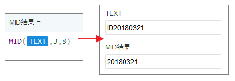 截取文本字段“TEXT”中间第3个字符开始,截取8个字符。