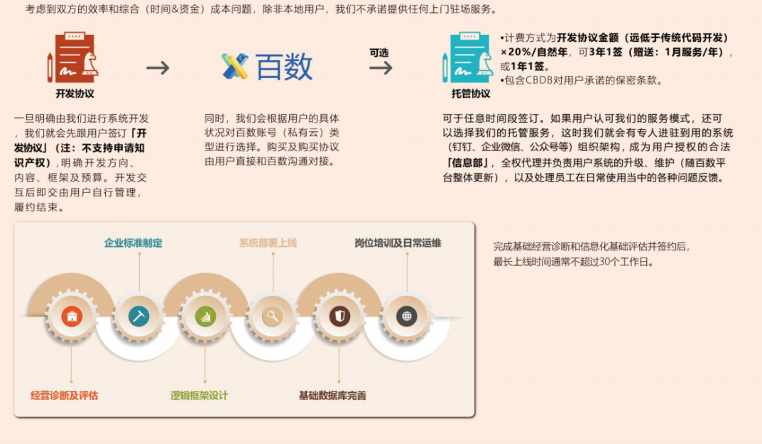 析比迪彼基于「精益管理」内核及「财务统计」法则,并使用云境SupportSaaS平台为用户定制开发专属的企业经营管理系统,为其客户提供真正实用管理实施工具,实现既跨行业又跨专业。