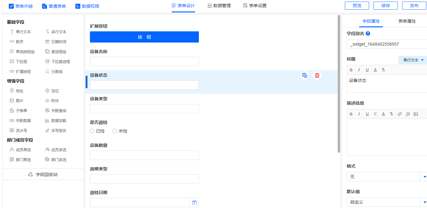 4.根据业务需求通过拖拽的方式设计表单内容