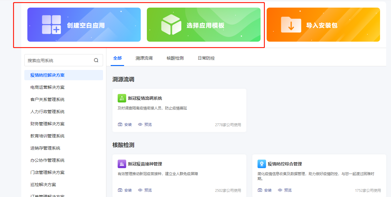 选择创建空白应用/选择已有应用模板