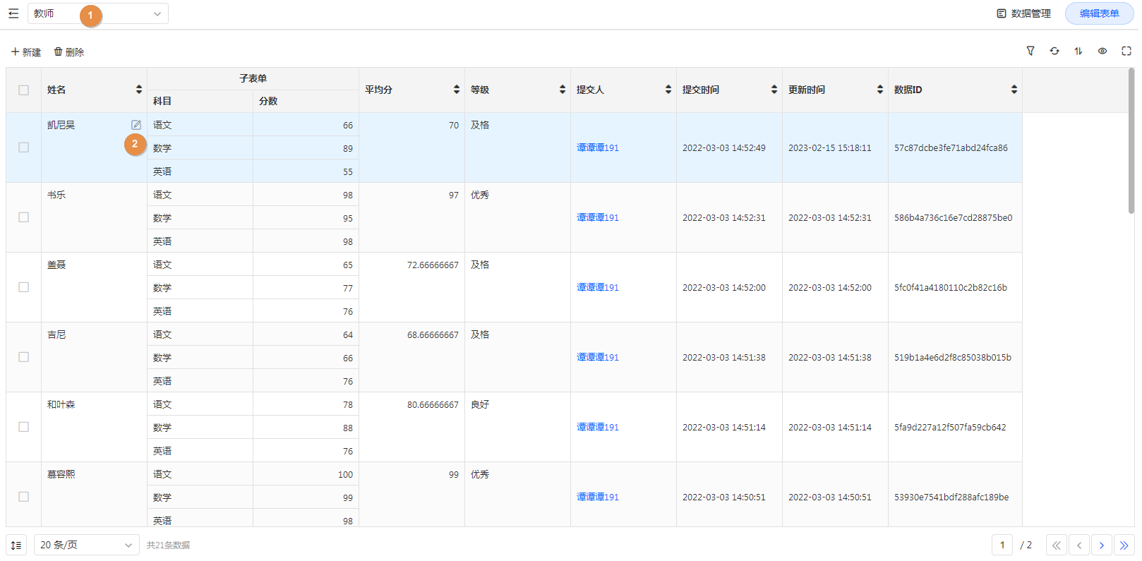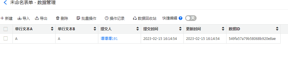 - 数据管理处快捷编辑数据时,不触发表单提交校验、数值范围校验、必填校验等,触发重复值校验、聚合表校验、扩展体系、联动和公式等。
