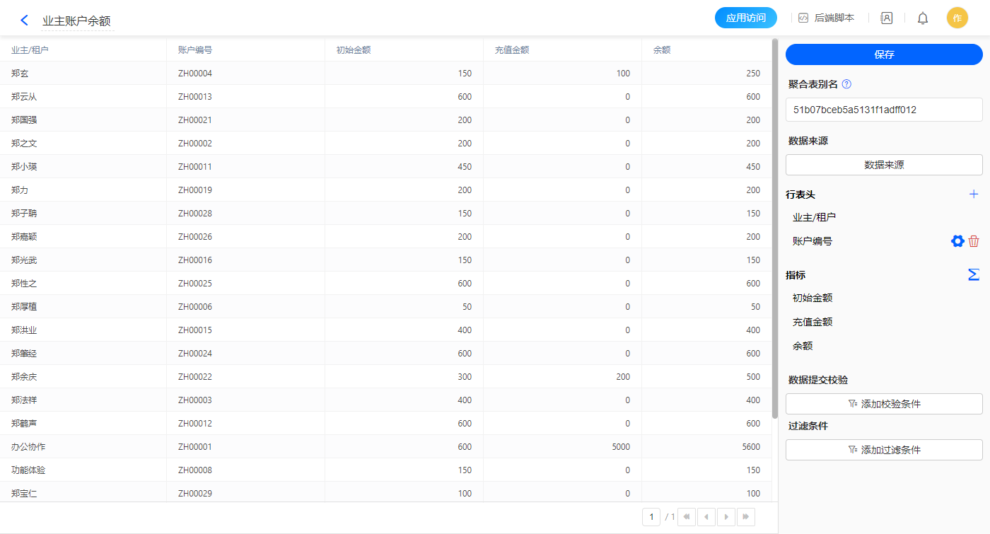 1)新增【房屋管理】报表,用基础报表【数据表】展示数据源为聚合表【房屋信息】的数据;