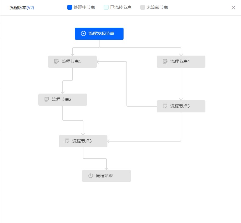 示例:流程发起节点发起流程,流转到流程节点1和流程节点4。
