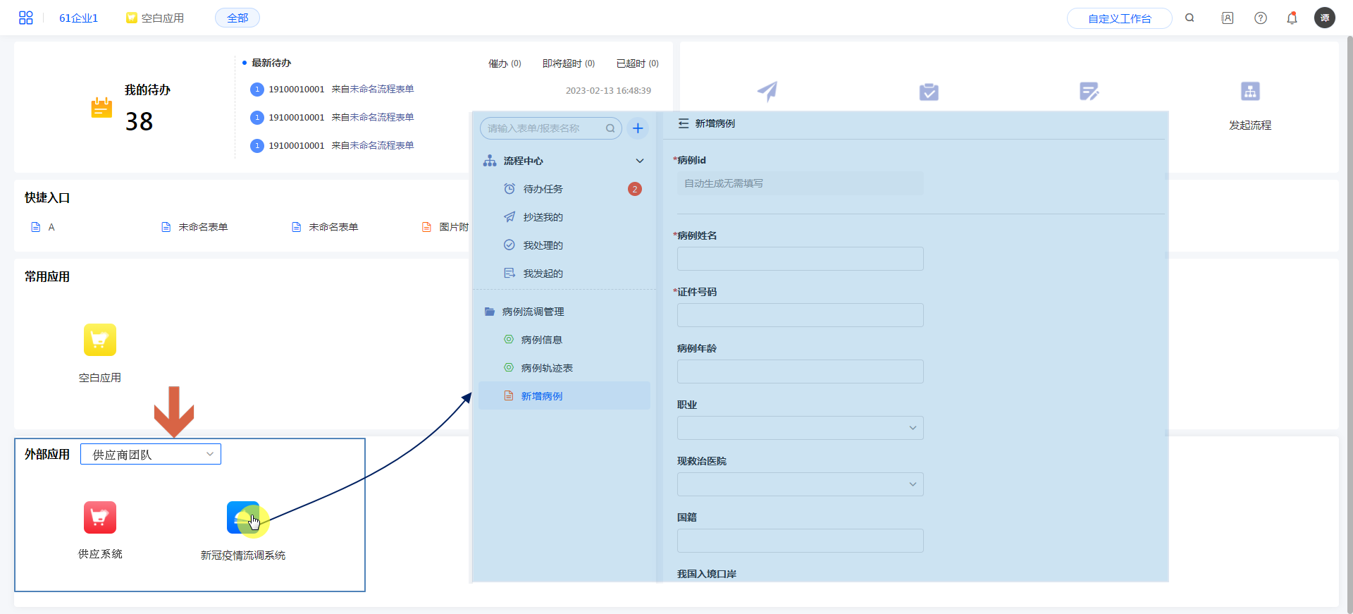 拥有权限的互联组织成员,可以在自己的企业工作台处,看到我方分配的有权限的应用。点击应用可以看到具体有权限的表单等数据,如下图所示: