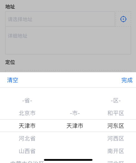 - 地址字段经纬度定位可关闭,【开启经纬度定位】勾选后可以经纬度定位,不勾选则不支持经纬度定位;默认不勾选。