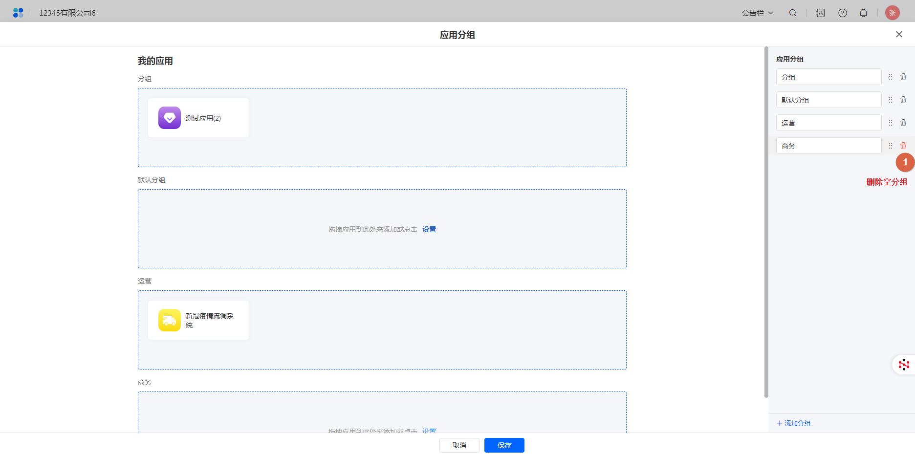 注意:当分组中的应用为空时,在工作台访问-我的应用中,不展示该分组。