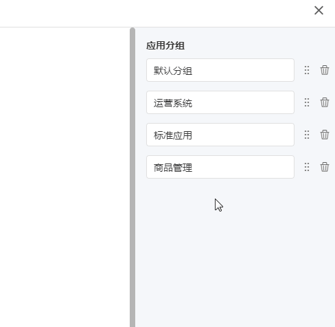 应用设置下,支持管理应用分组以及调整分组下的应用。
