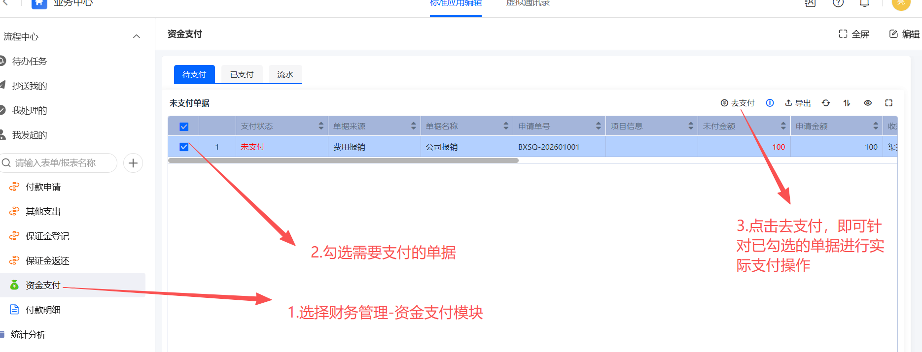 业务中心-财务管理-资金支付