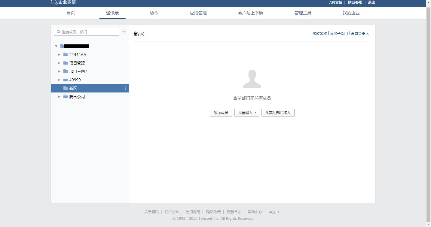 如果需要在云境Support通讯录中添加、删除部门或者成员,则需要先在企业微信中对组织架构进行调整,然后在云境Support的通讯录中进行同步。