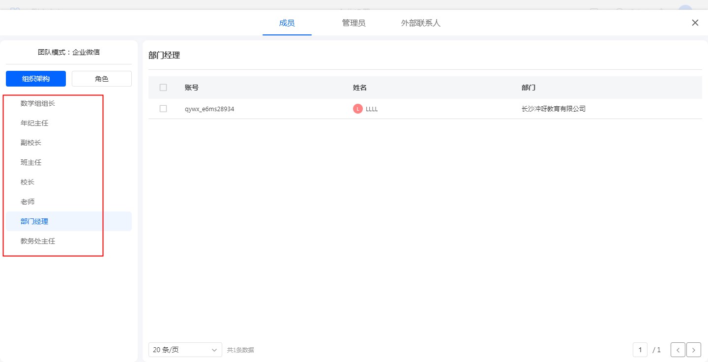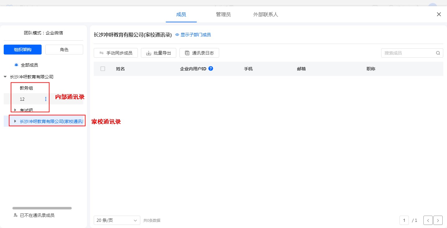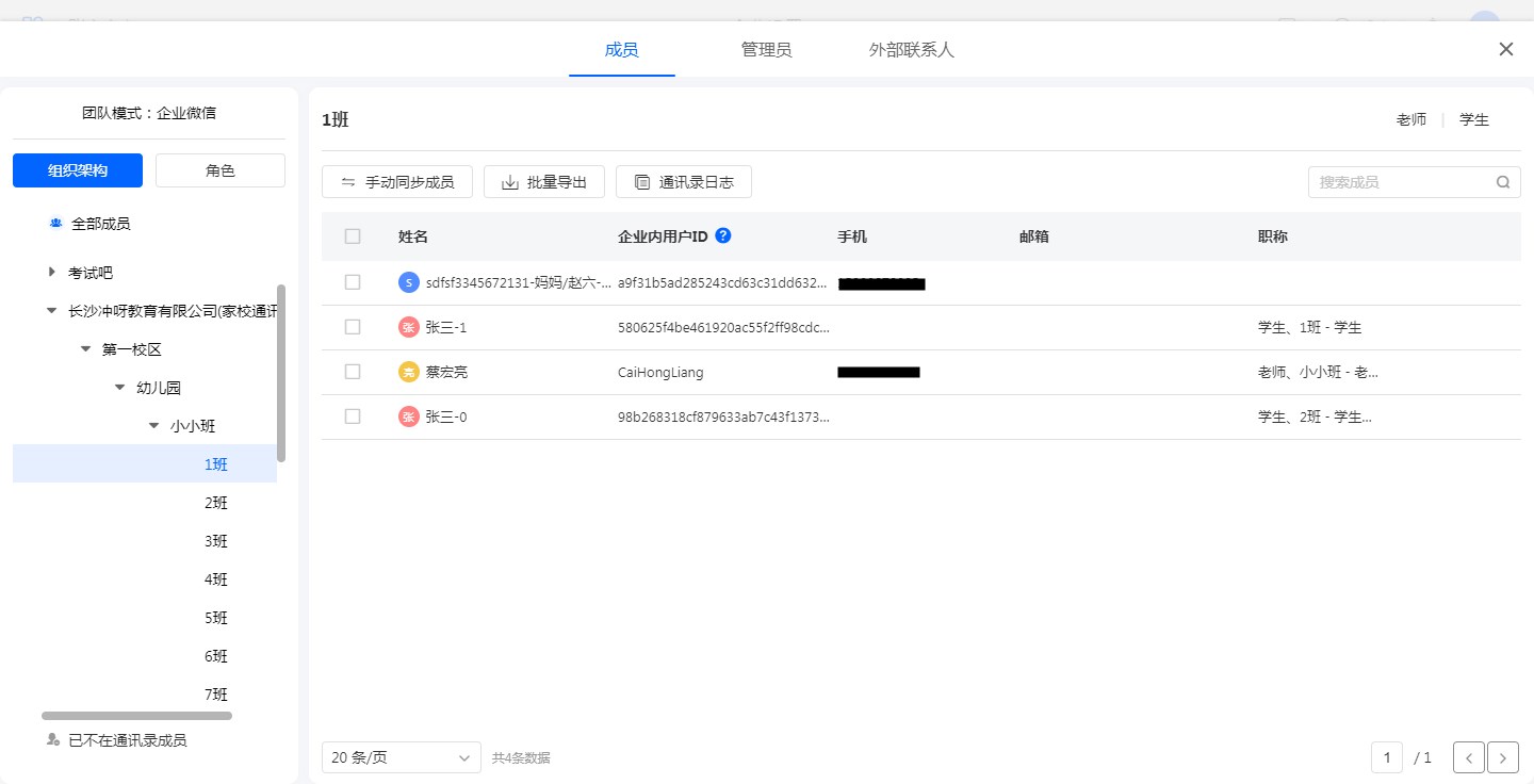 企业微信家校通讯录的成员同步到系统通讯录中,会根据身份拥有对应的家长/学生/老师职称。