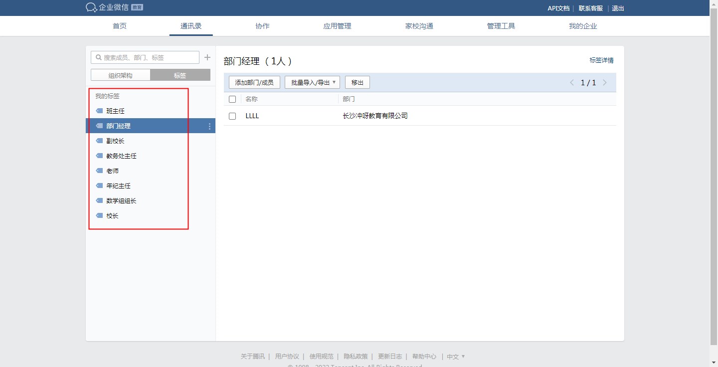 企业微信通讯录内的标签支持同步到系统通讯录的角色中。