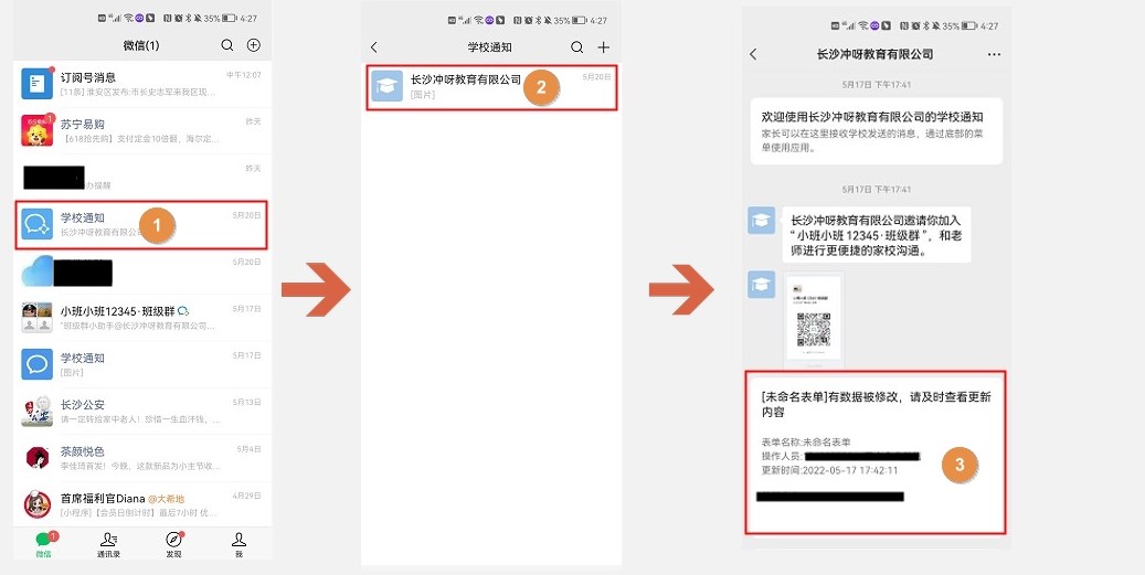 家校通讯录的家长使用系统需先完成以下2步:
