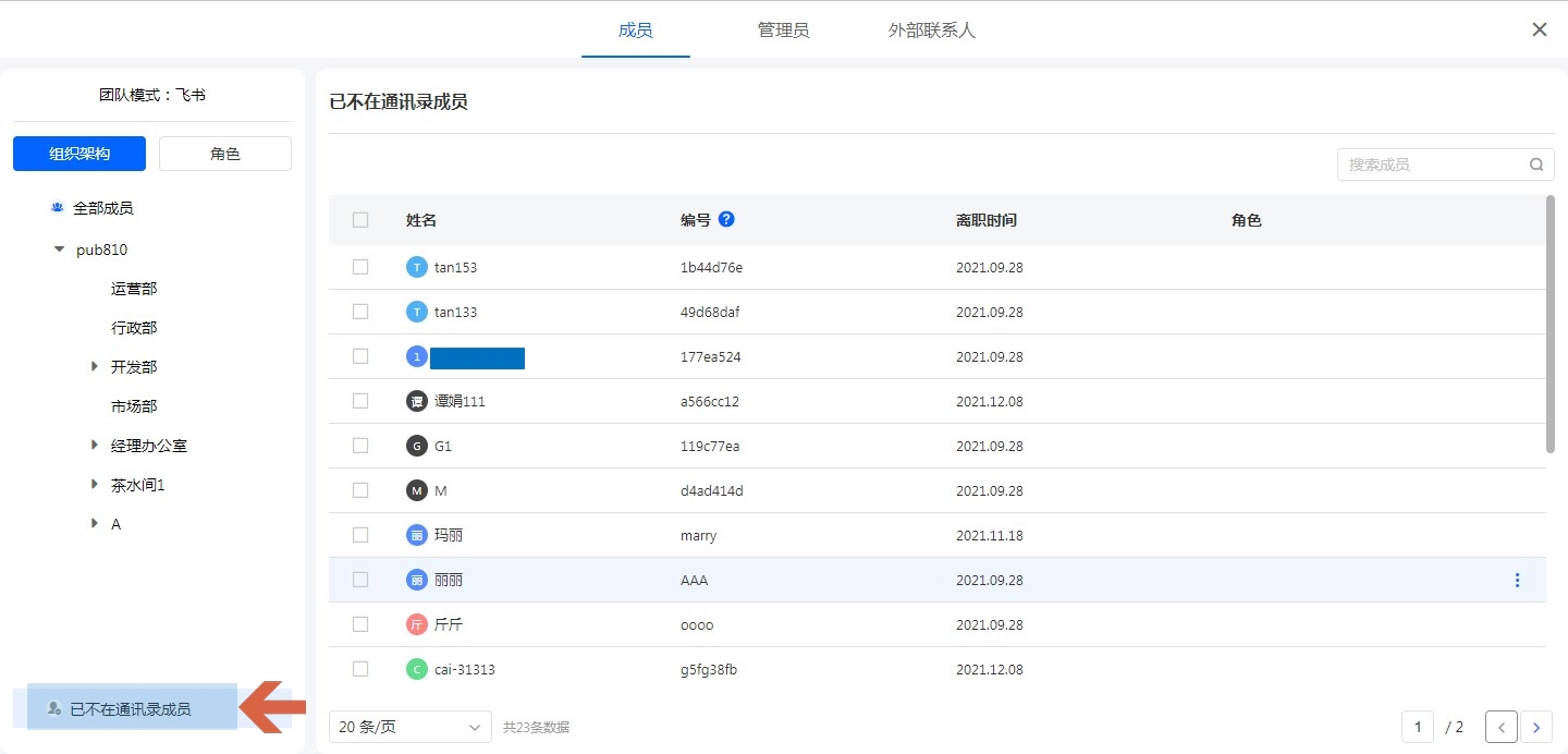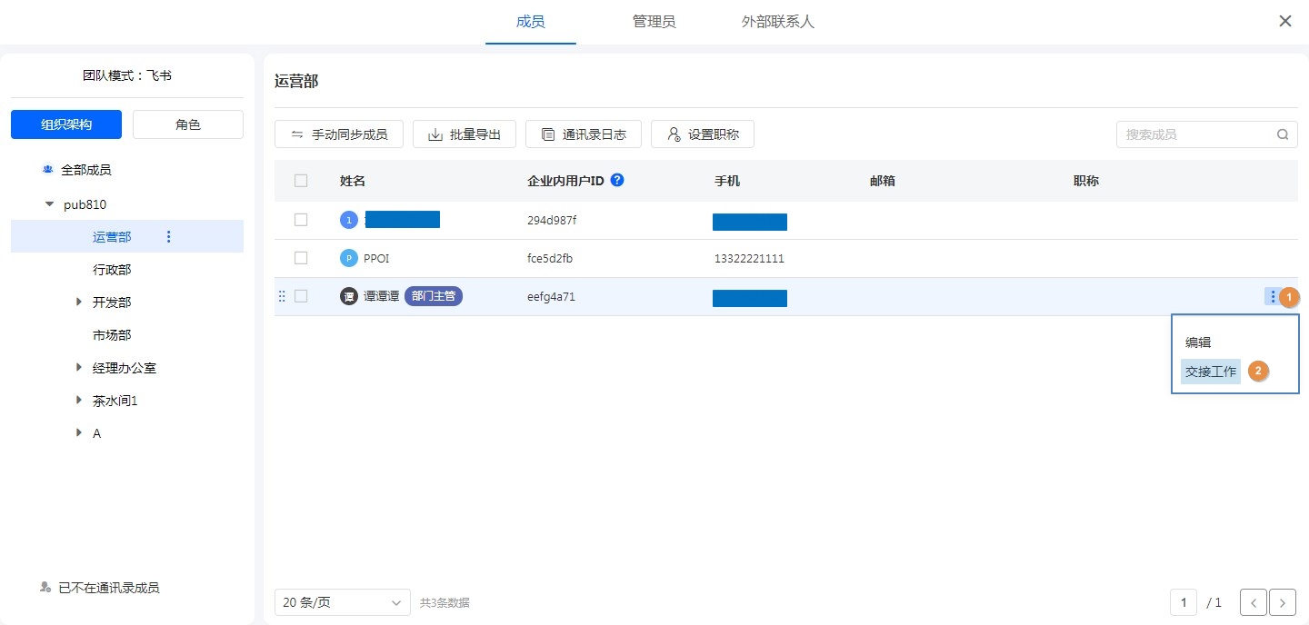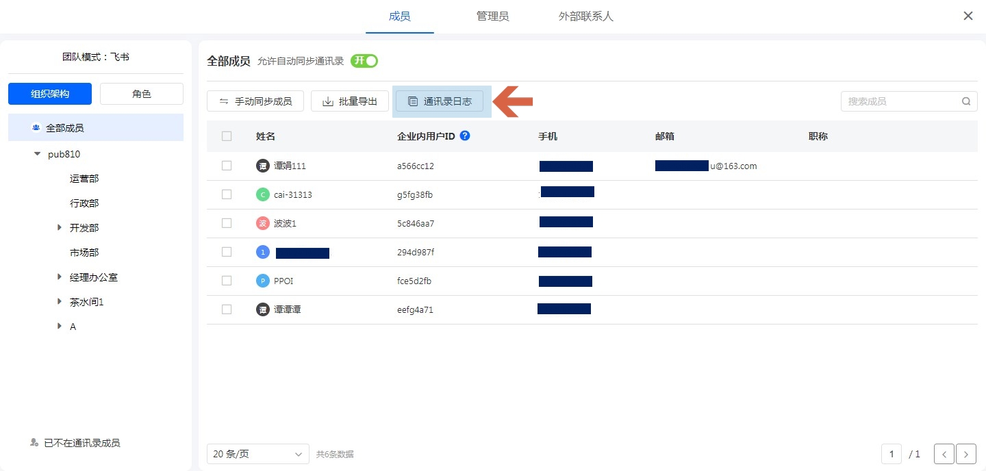 - 无法通过通讯录添加成员,需在飞书中添加成员后再同步到系统中。