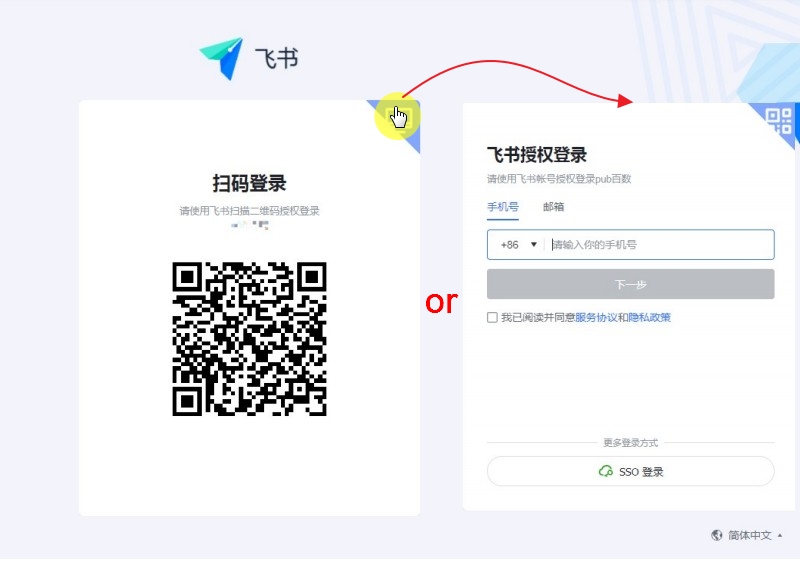 - 直接飞书扫码登录,省去输入账号密码的烦恼