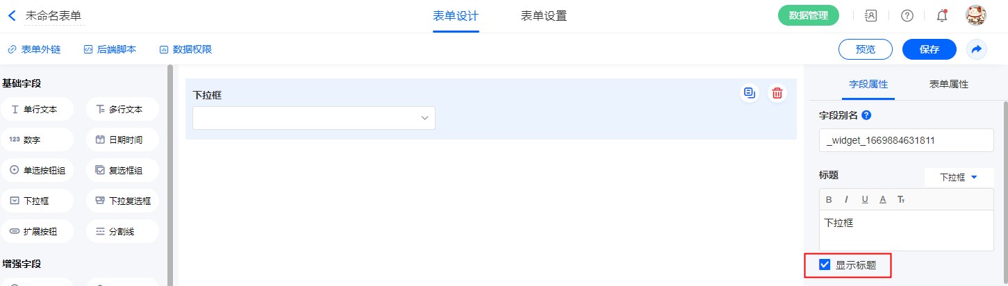 “标题”可以修改字段名称。