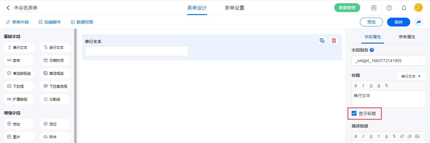 “字段别名”用于后端开发,默认为系统自动生成的随机字符串,可修改。