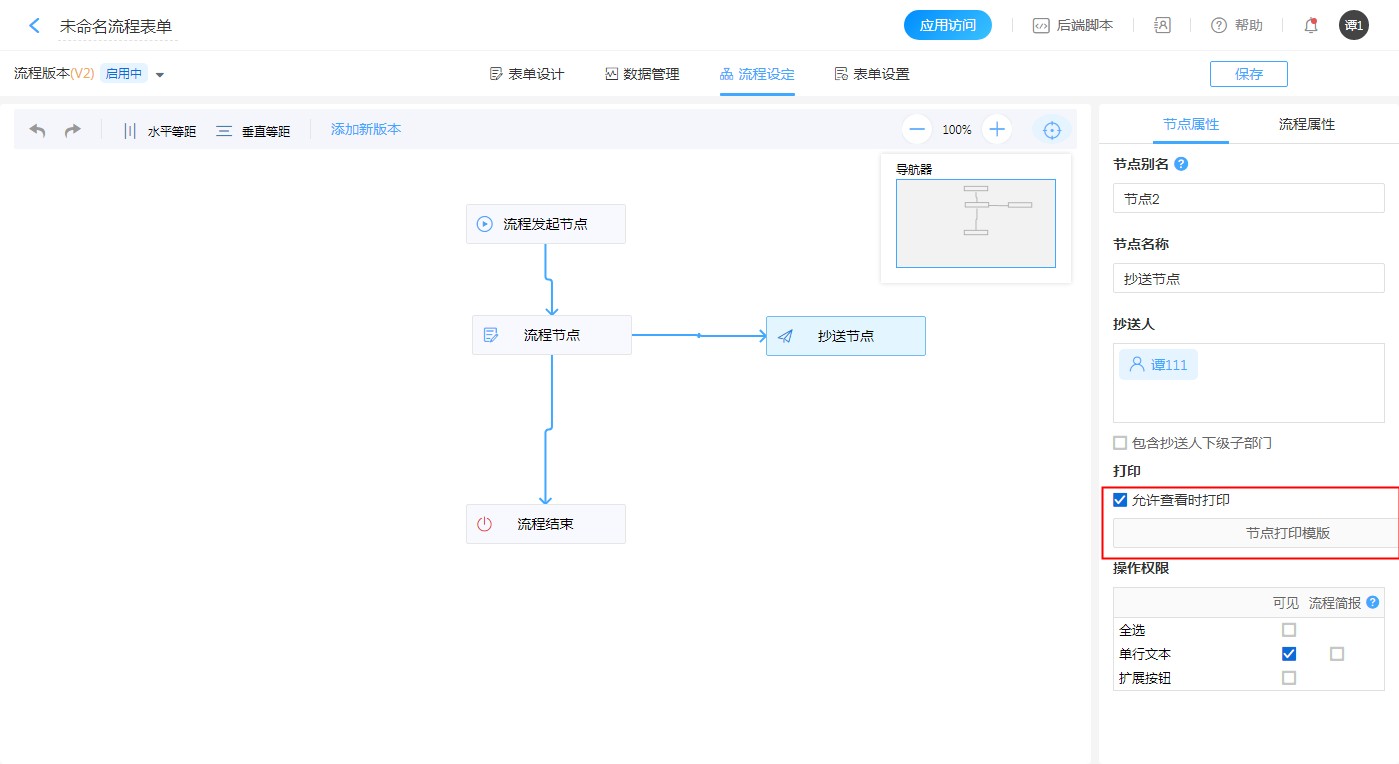 • 流程表单在设计流程时,可以给抄送节点设计打印模板。