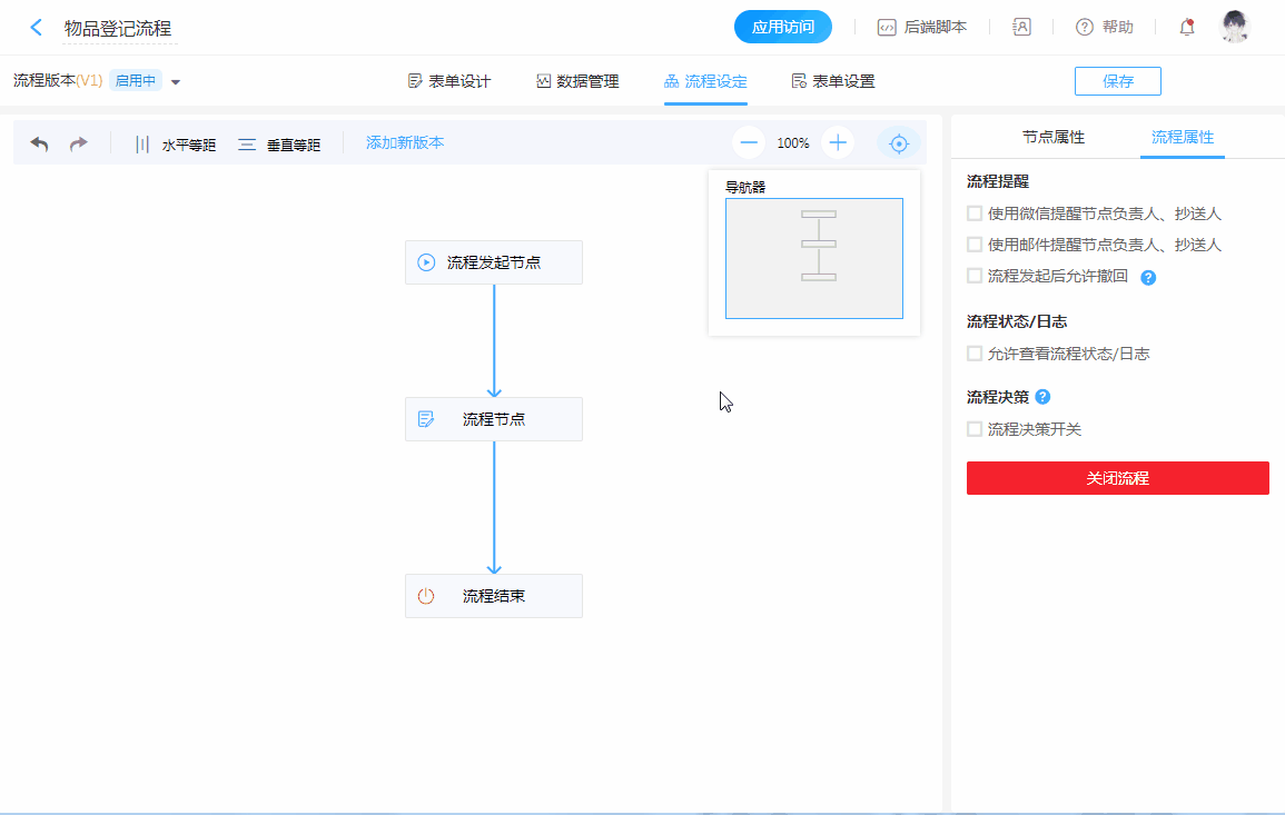 填写数据发起流程 提交并打印 发起节点勾选允许提交后打印