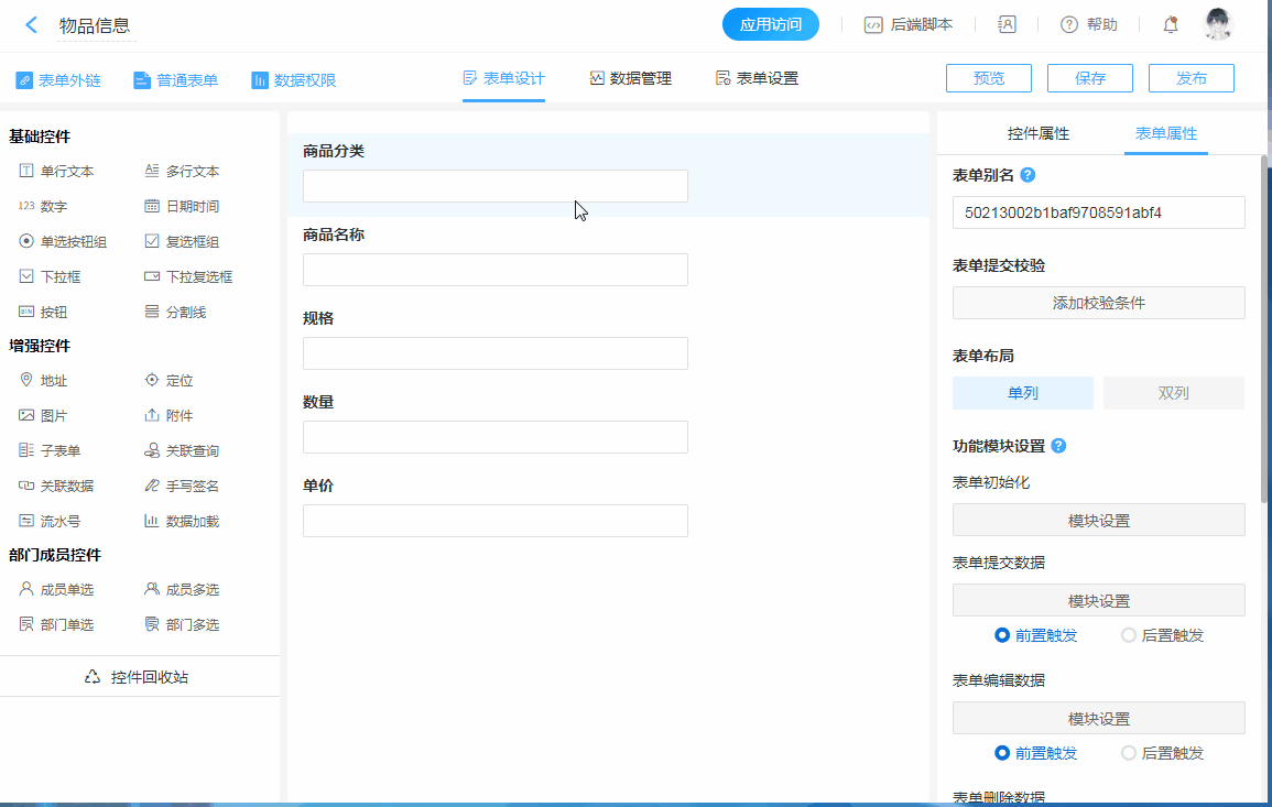 在数据管理、表单访问内链,可使用的打印模板需要在表单数据权限中配置,配置方法如下: