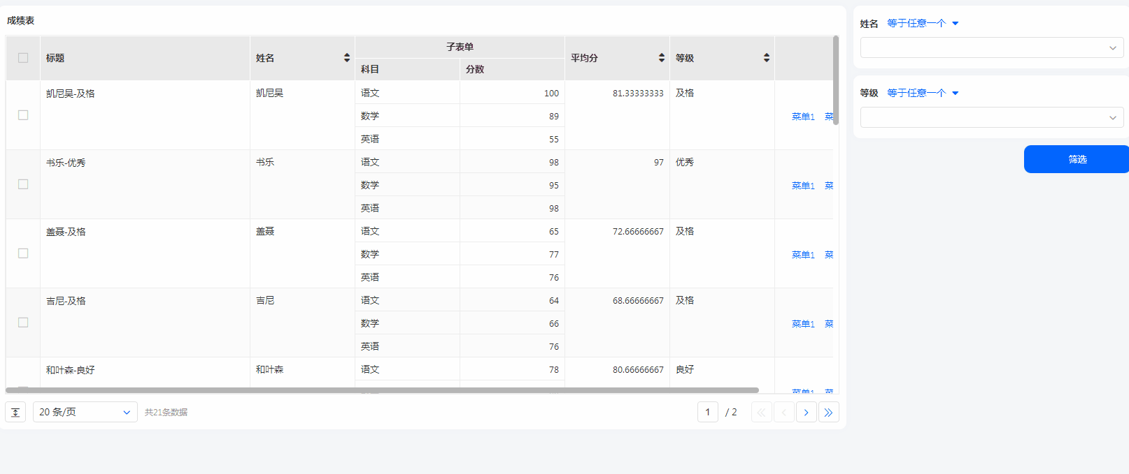数据表适合任何场景,尤其适用于需要进行复杂交互的场景,如:运营分析系统中,商品销售查询和商品销售详情表单中就利用数据表的功能,实现了复杂交互场景的实现。