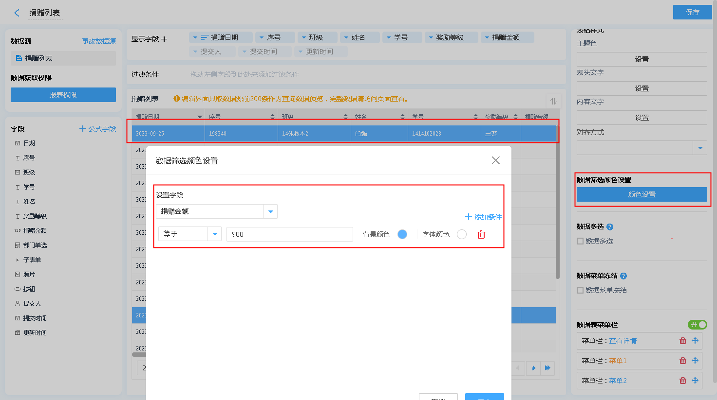 字段颜色:字段支持更改颜色,可设置条件对字段进行