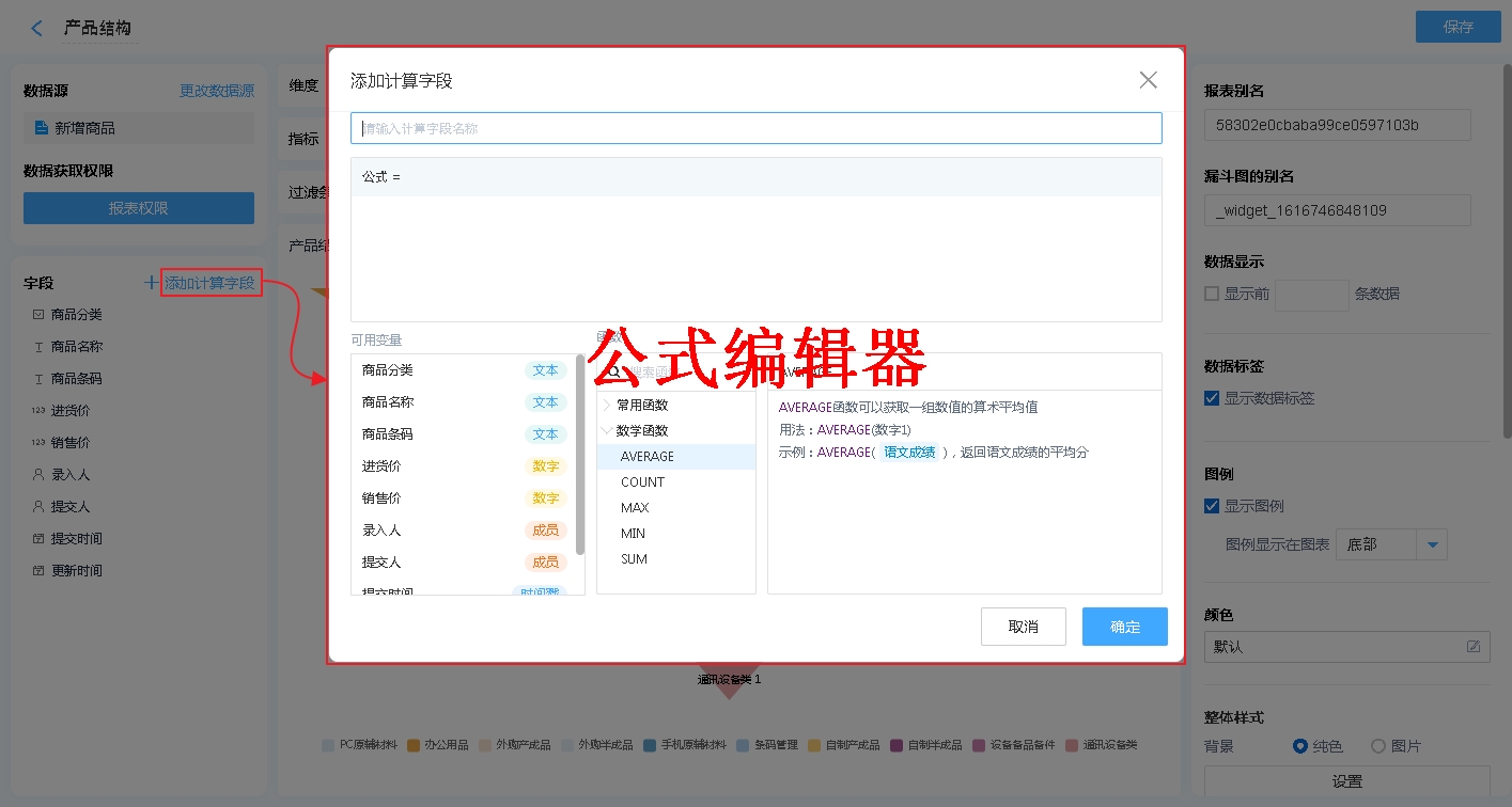 也可以通过增加公式字段,对报表中显示的内容进行简单的计算处理【支持绝大多数数学函数及+-*/四则运算】。