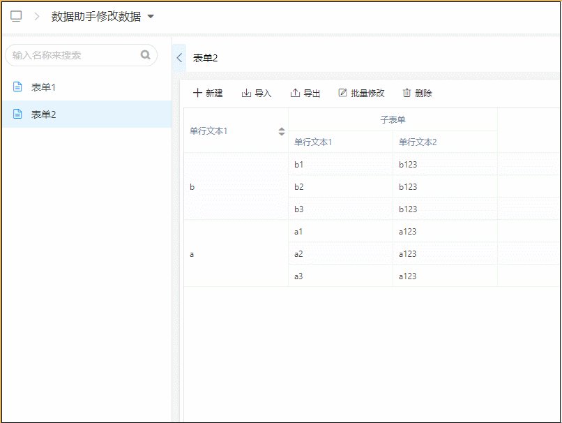创建“修改数据”动作节点,将“输出表”的数据更新至其他表单。